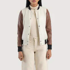 Be the first to review “Savant White & Brown Hybrid Varsity Jacket”